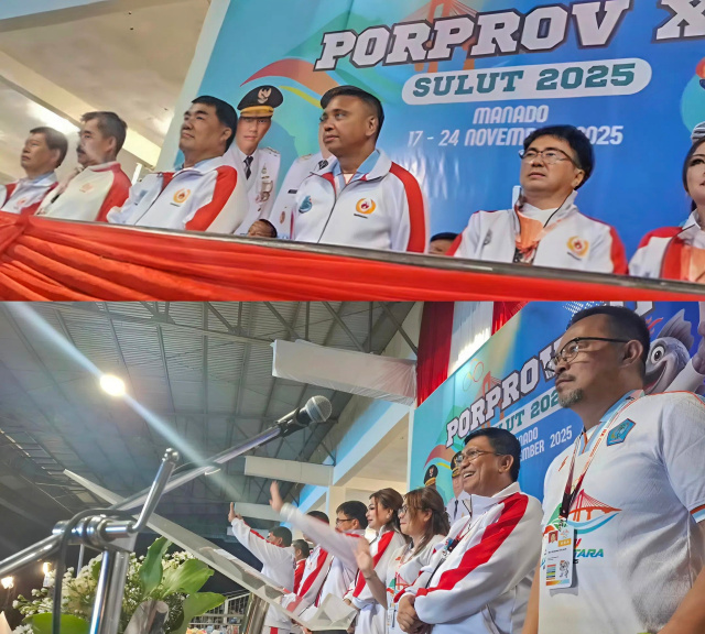 MANADO, Onesiaa.com – Gubernur Sulut, Mayjen (Purn) Yulius Selvanus didampingi, Wali Kota Manado, dan Wakil Wali Kota, Andrei Angouw dan dr Richard Sualang (AARS) resmi membuka Opening Ceremony Pekan Olahraga Provinsi (Porprov) XII Sulawesi Utara (Sulut) yang digelar di Stadion Klabat Manado, Rabu (19/11/2025).