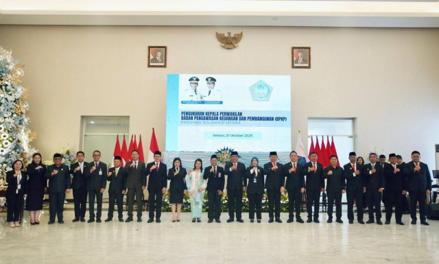 MANADO, Onesiaa.com – Bupati Minahasa Selatan, Bapak Franky Donny Wongkar SH menghadiri kegiatan Pengukuhan/Pelantikan Kepala Perwakilan Badan Pengawasan Keuangan dan Pembangunan (BPKP) Provinsi Sulawesi Utara, yang bertempat di Wisma Negara Gubernuran Bumi Beringin, Kota Manado, Selasa (21/10/2025).