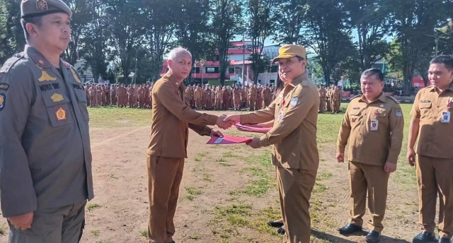 Pimpin Apel Perdana Awal Bulan, Sekda Dandel Serahkan SK Kenaikan Pangkat dan Pensiun bagi ASN Pemkot Manado