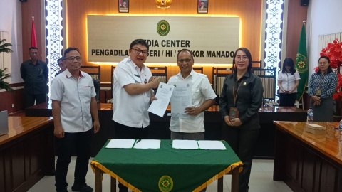 MANADO, Onesiaa.com – Pengadilan Negeri (PN) Manado bersama Dinas Kependudukan dan Pencatatan Sipil (Disdukcapil) Kota Manado melaksanakan Penandatanganan Perjanjian Kerja Sama (PKS) dan Sosialisasi Aplikasi Pengiriman Salinan Putusan yang berkaitan dengan administrasi kependudukan dan pencatatan sipil, yang digelar di Media Center Pengadilan Negeri Manado, Rabu (5/11/2025).